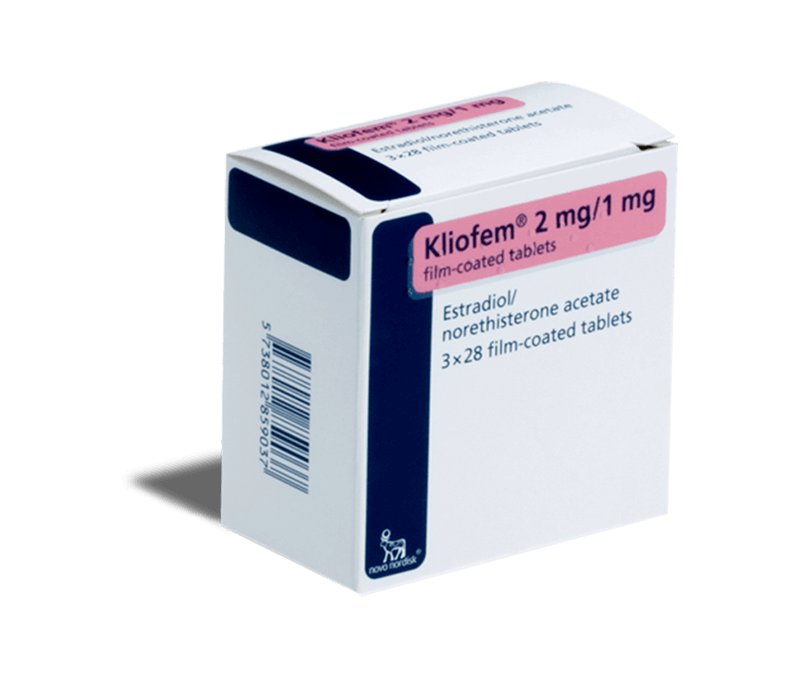 El Kliofem es conocido como una terapia de reemplazo hormonal combinada (TRH) continua. Está conformado por dos hormonas femeninas: estradiol (2 mg) que es la misma producida por los ovarios de la mujer, y el acetato de noretisterona (1 mg) que es un progestágeno sintético y actúa como la progesterona de la mujer.